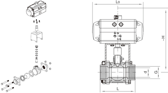 進(jìn)口氣動螺紋球閥結(jié)構(gòu): |